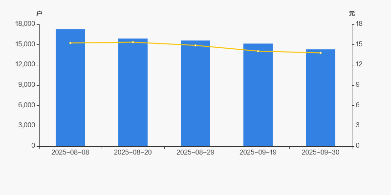 自2025年8月8日以来,公司股东户数连续4期下降,截至目前减幅为17.14%。2025年8月8日至2025年9月30日区间股价下降9.57%。