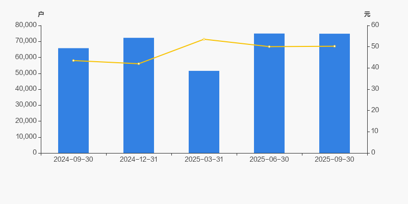 截至2025年9月30日,公司最新流通股本为5.54亿股。最新户均持有流通股数为7403,较上期略有上升;户均流通股市值为37.19万元。