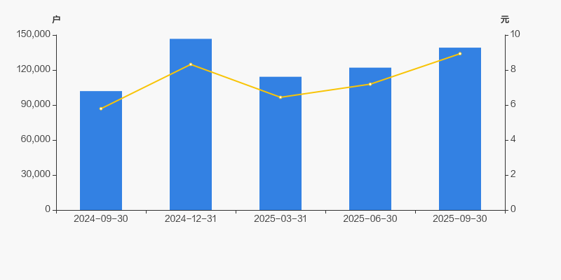 2024年9月30日至今,公司股东户数显著增长,区间涨幅为36.55%。2024年9月30日至2025年9月30日区间股价上涨54.23%。