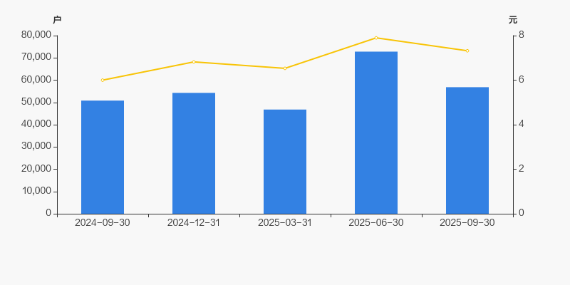 截至2025年9月30日,公司最新总股本为5.26亿股,其中流通股本为4.53亿股。户均持有流通股数量由上期的6221股上升至7969股,户均流通市值5.83万元。