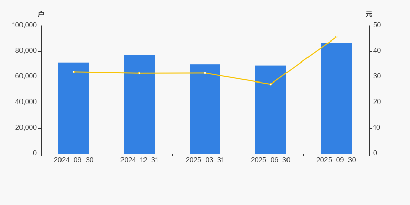 2024年9月30日至今,公司股东户数显著增长,区间涨幅为21.71%。2024年9月30日至2025年9月30日区间股价上涨42.55%。