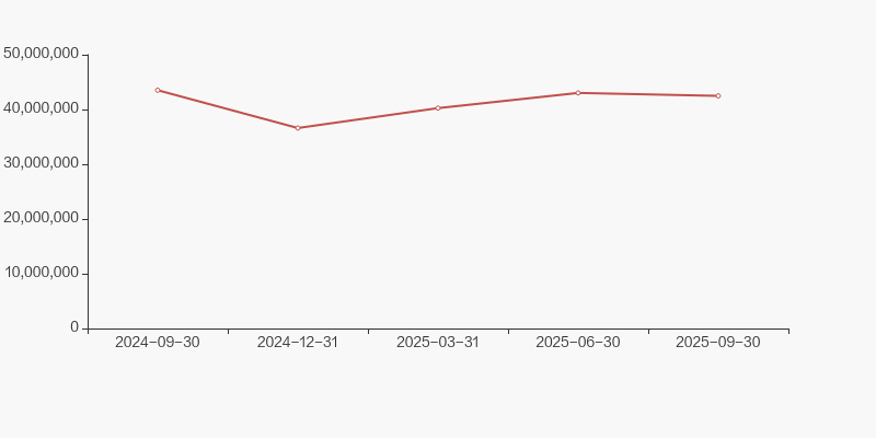 截至2025年9月30日,公司最新总股本为13.1亿股,其中流通股本为12.32亿股。户均持有流通股数量由上期的1.79万股下降至1.42万股,户均流通市值64.58万元。
