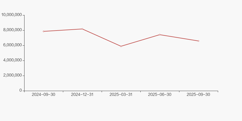 截至2025年9月30日,公司最新总股本为8.31亿股,其中流通股本为6.73亿股。户均持有流通股数量由上期的9478股下降至8864股,户均流通市值22.15万元。