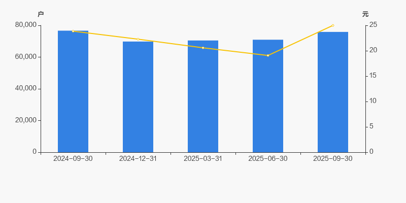 自2024年12月31日以来,公司股东户数连续3期上涨,截至目前增幅为8.70%。2024年12月31日至2025年9月30日区间股价上涨12.16%。