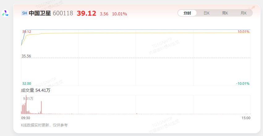 今日收盘中国卫星涨停,可能有以下几个原因: