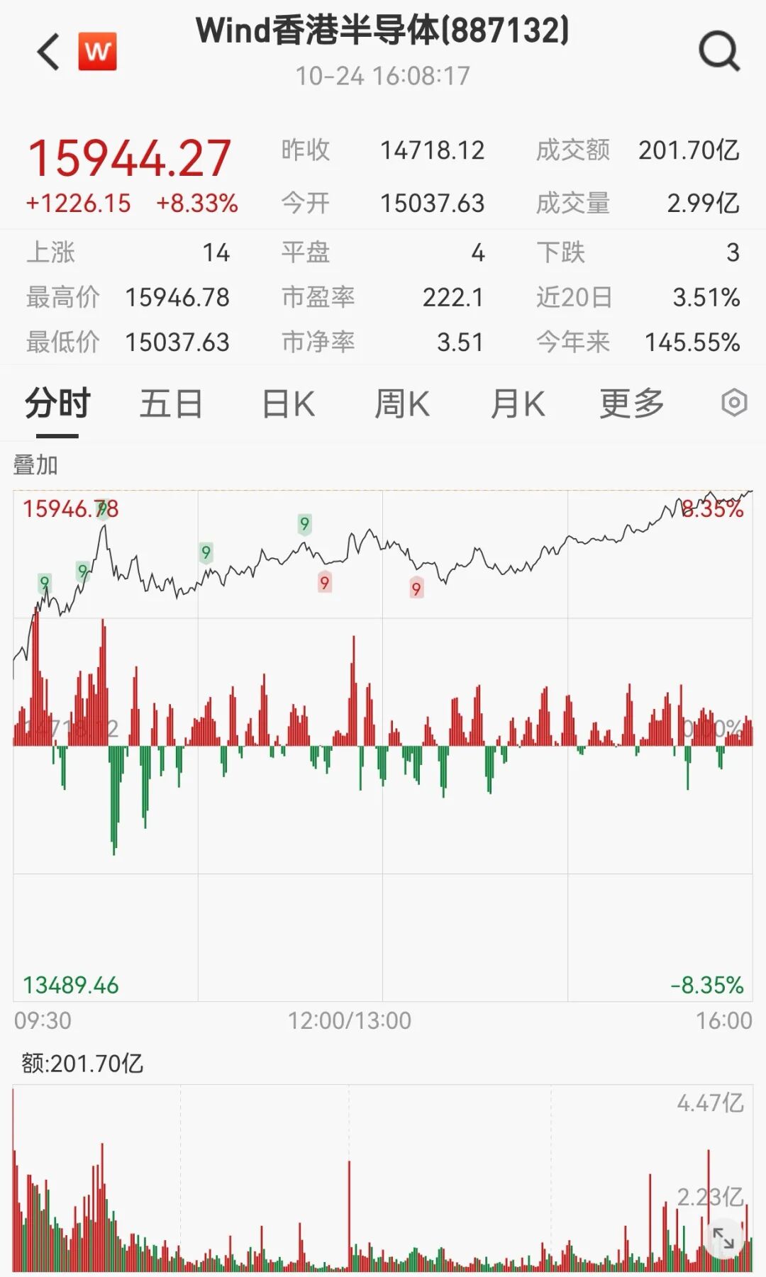 从盘面来看,Wind概念板块多数上涨,金融IC指数涨13.63%,集成电路产业基金指数涨9.03%,集成电路指数涨8.59%。跌幅方面,蓝宝石指数领跌3%,智能建筑指数跌2.04%,智能家居指数跌1.75%。