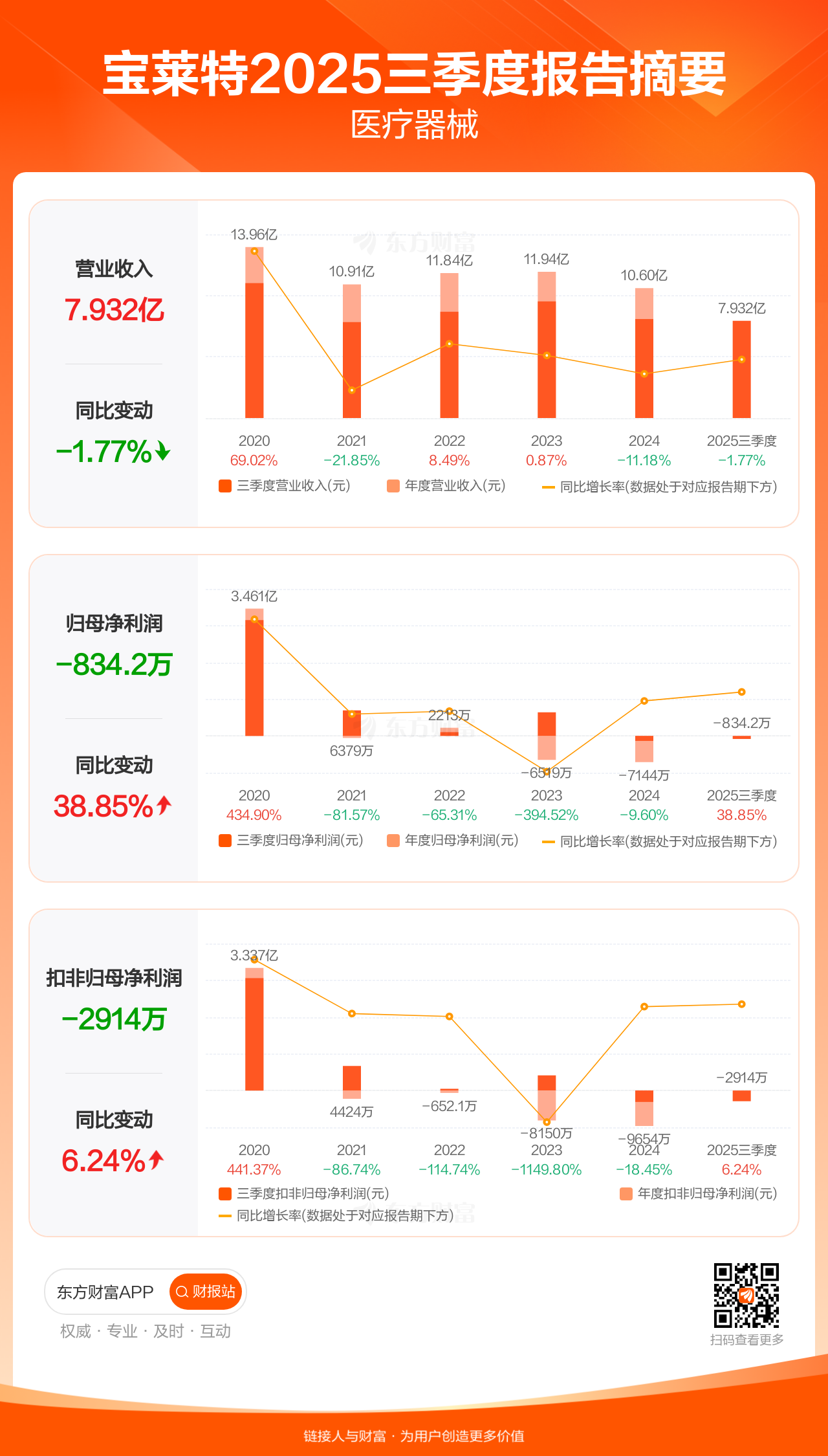 图解财报:宝莱特前三季归母净利润-834.17万元