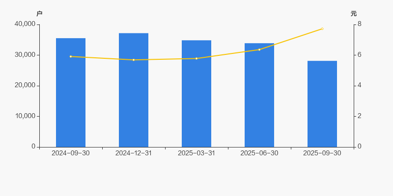 自2024年12月31日以来,公司股东户数连续3期下降,截至目前减幅为24.33%。2024年12月31日至2025年9月30日区间股价上涨35.68%。