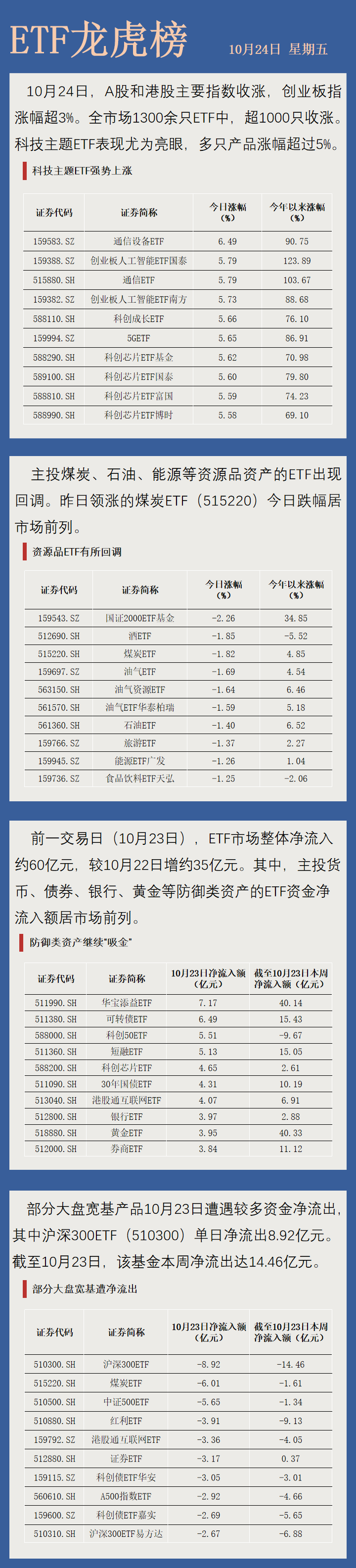 【ETF龙虎榜】科技主题ETF爆发,多只产品涨超5%