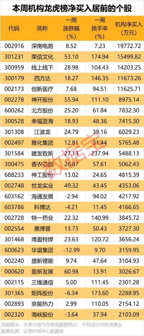 一周龙虎榜: