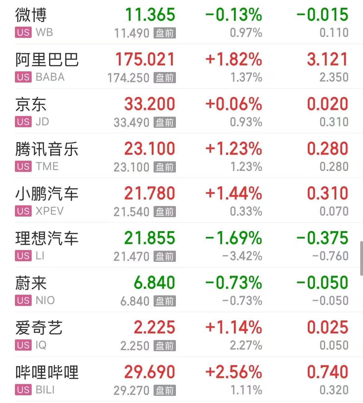 热门中概股涨跌不一,哔哩哔哩涨超2%,阿里巴巴、小鹏汽车、爱奇艺涨超1%,微博、理想汽车、蔚来下跌。