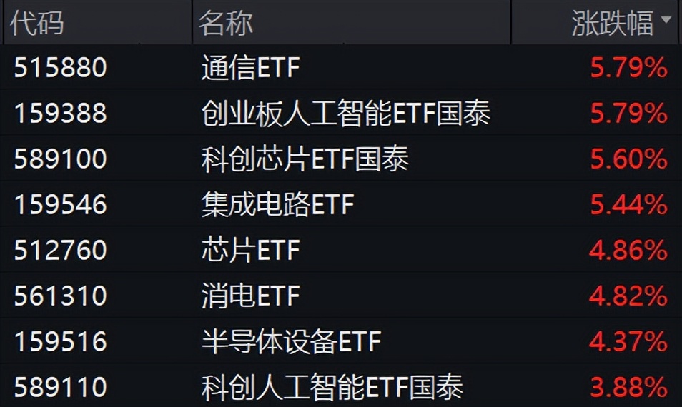 市场全天震荡反弹,沪指刷新年内新高,创业板指领涨。沪深两市成交额1.97万亿元,较上一个交易日放量3303亿。截至收盘,沪指涨0.71%,深成指涨2.02%,创业板指涨3.57%。。算力板块大涨,海外算力、国产算力表现强势,通信ETF、创业板人工智能ETF、集成电路ETF涨超5%。
