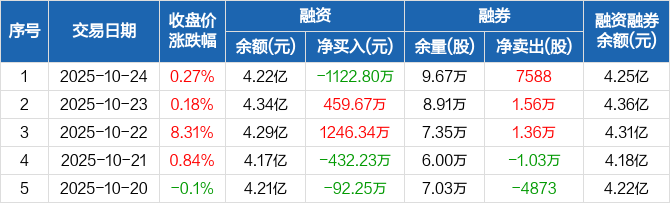 圣湘生物:融资净偿还1122.8万元,融资余额4.22亿元(10-24)