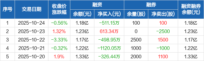 德新科技融资融券信息显示,2025年10月24日融资净偿还511.15万元;融资余额1.18亿元,较前一日下降4.15%。