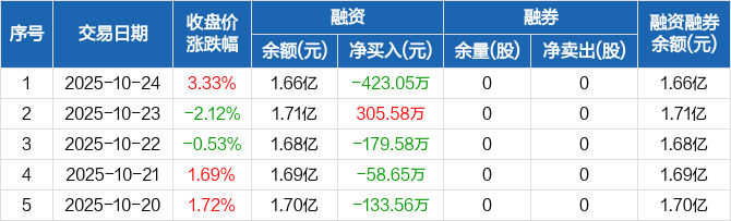 慧智微:融资净偿还423.05万元,融资余额1.66亿元(10-24)