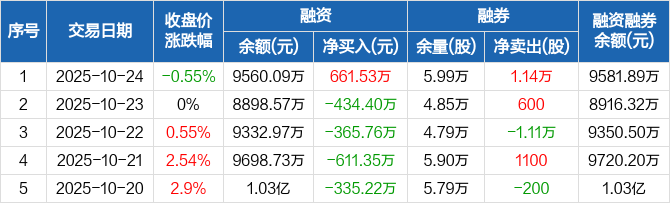 华纺股份:融资净买入661.53万元,融资余额9560.09万元(10-24)