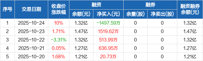 圣龙股份:融资净偿还1497.59万元,融资余额1.32亿元(10-24)