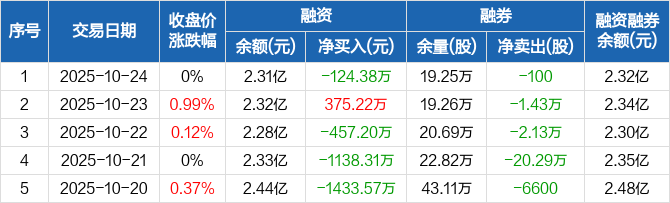 申能股份:融资净偿还124.38万元,融资余额2.31亿元(10-24)