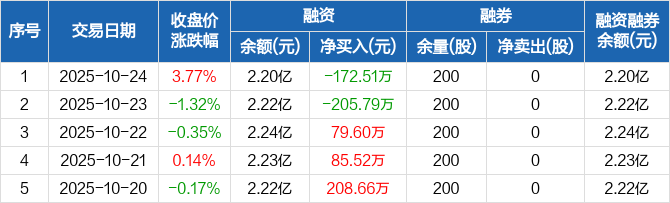 清溢光电:融资净偿还172.51万元,融资余额2.2亿元(10-24)
