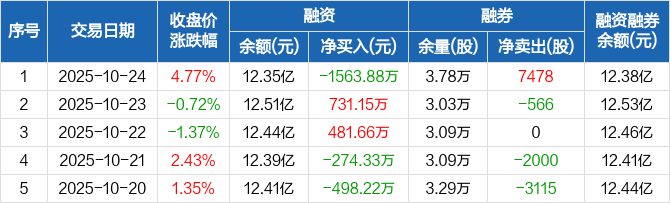 铂力特:融资净偿还1563.88万元,融资余额12.35亿元(10-24)