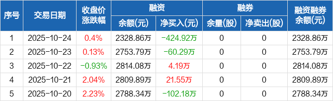 碧兴物联:融资净偿还424.92万元,融资余额2328.86万元(10-24)