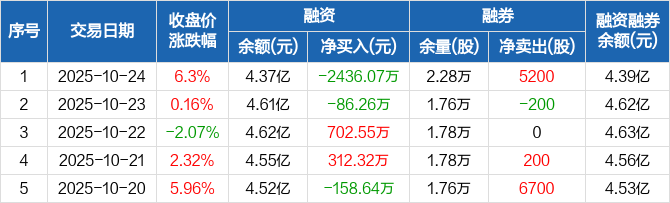 皓元医药:融资净偿还2436.07万元,融资余额4.37亿元(10-24)