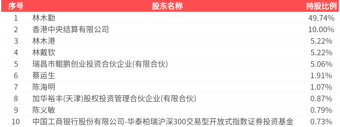 公司股东户数为1.60万户,前十大股东持股数量为4.19亿股,占总股本比例为80.62%,前十大股东持股情况如下: