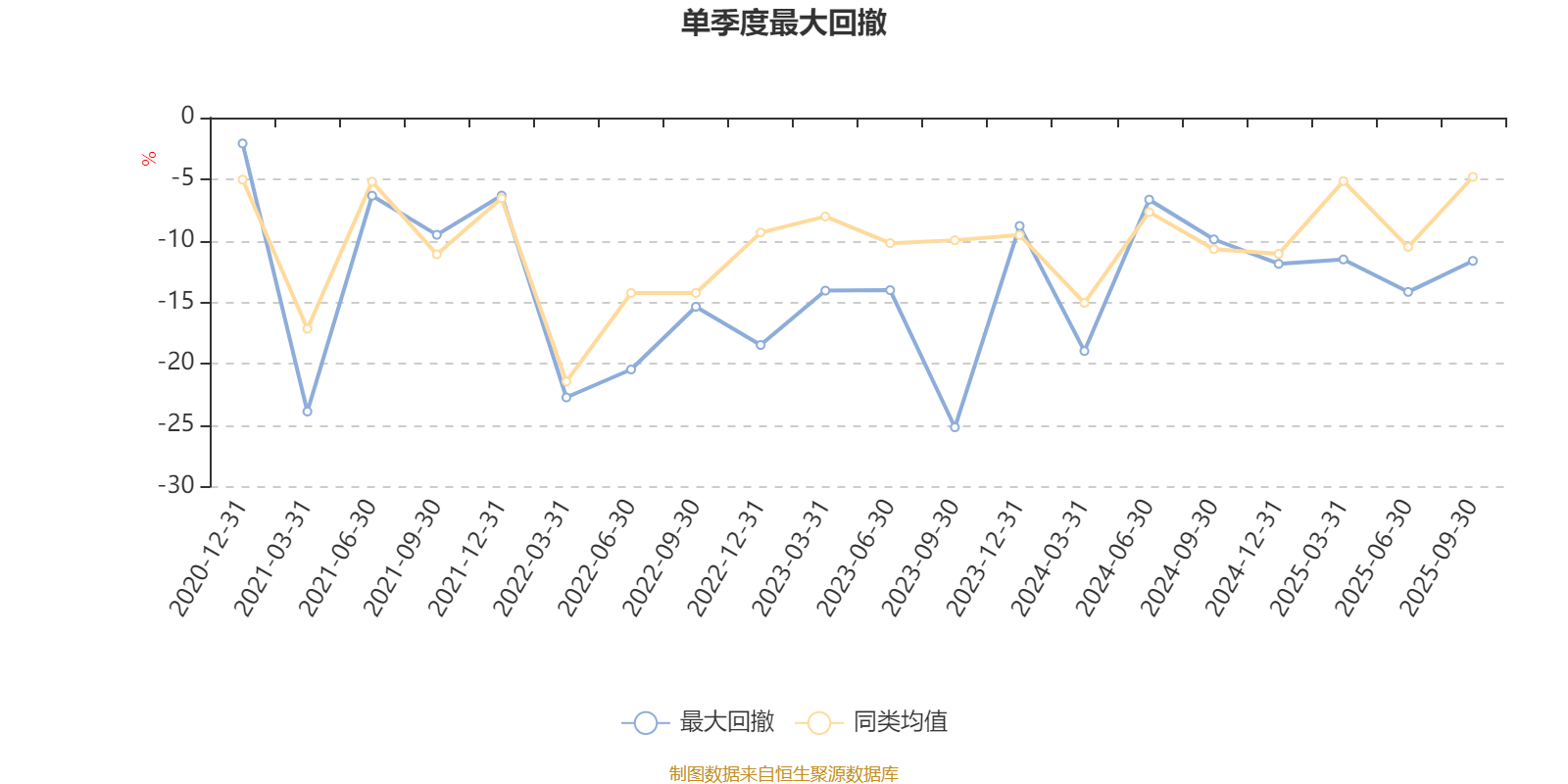 截至10月24日,基金近三年最大回撤为44.44%,同类可比基金排名50/56。单季度最大回撤出现在2023年三季度,为25.18%。