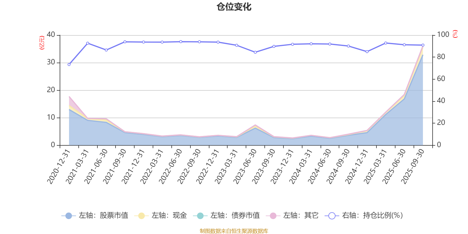 据定期报告数据统计,近三年平均股票仓位为90.36%,同类平均为88.49%。2022年上半年末基金达到94.05%的最高仓位,2020年末最低,为73.29%。