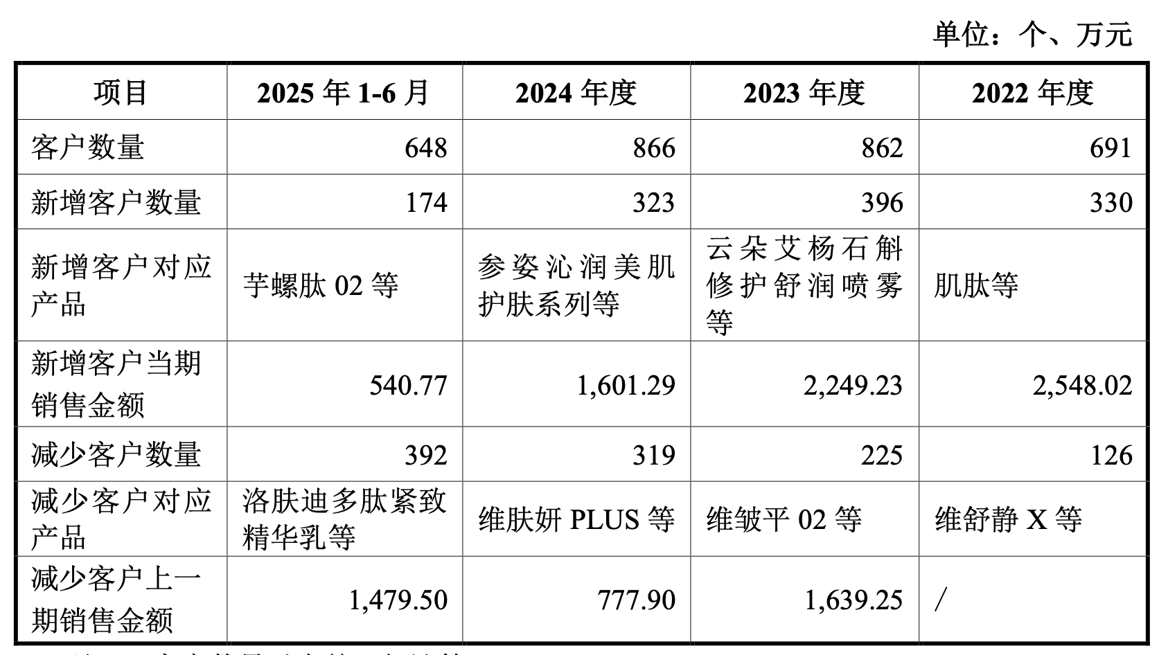 数据显示,报告期内,维琪科技各期新增客户数量和减少客户数量都相对较大。