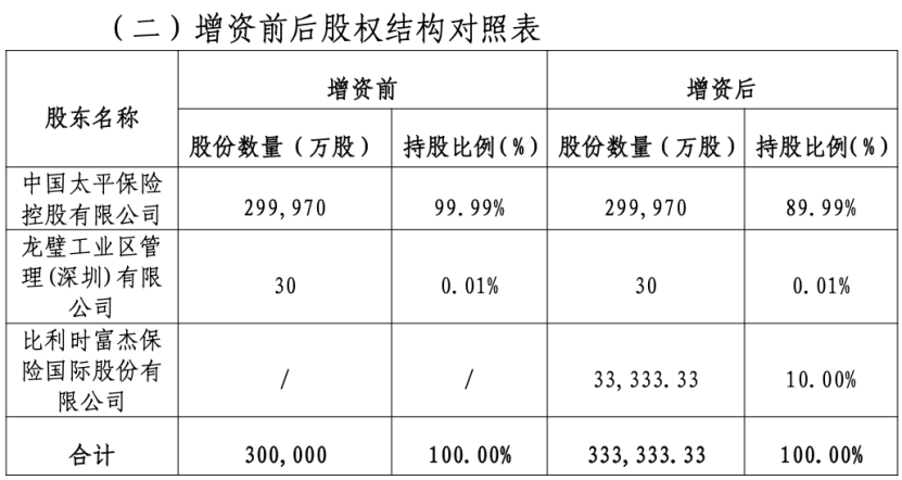 此次增资完成后,比利时富杰成为太平养老第二大股东。