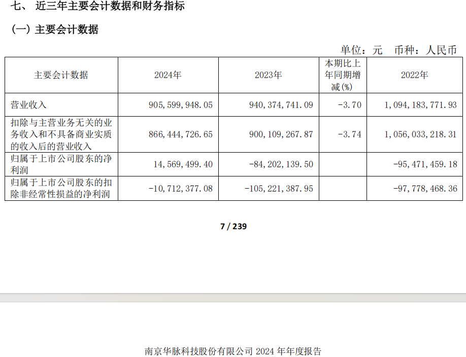近年来,华脉科技的主营业务业绩均处于亏损状态。2022年至2024年,华脉科技的扣非后净利润分别为9777.85万元、-1.05亿元、-1071.24万元。