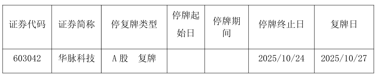 10月24日晚间,华脉科技(603042)发布公告称,由于涉及事项较多,与交易对方就核心事项未达成共识,经慎重考虑,交易双方决定终止筹划本次重大事项。公司股票将于2025年10月27日(星期一)上午开市起复牌。