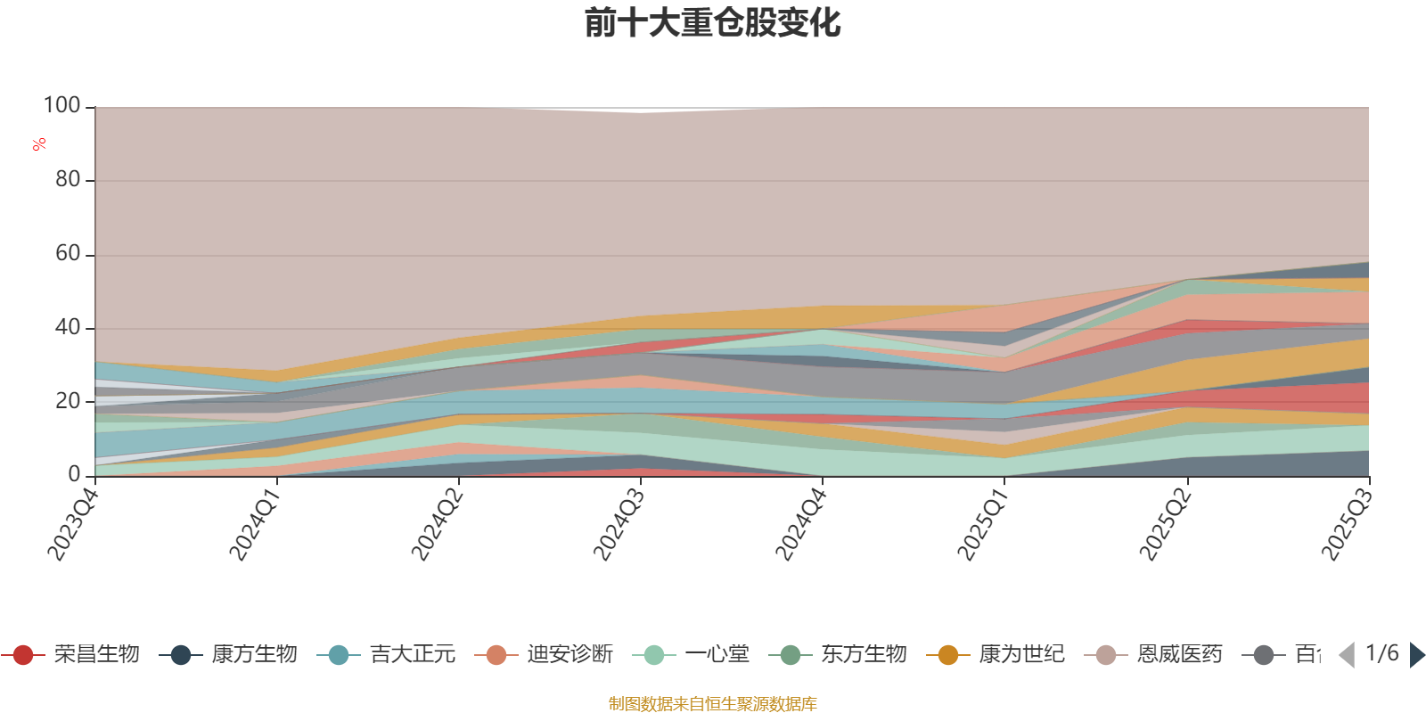 截至2025年三季度末,基金十大重仓股分别是固生堂、开立医疗、爱博医疗、一心堂、康方生物、天立国际控股、方盛制药、三友医疗、再鼎医药、康为世纪。