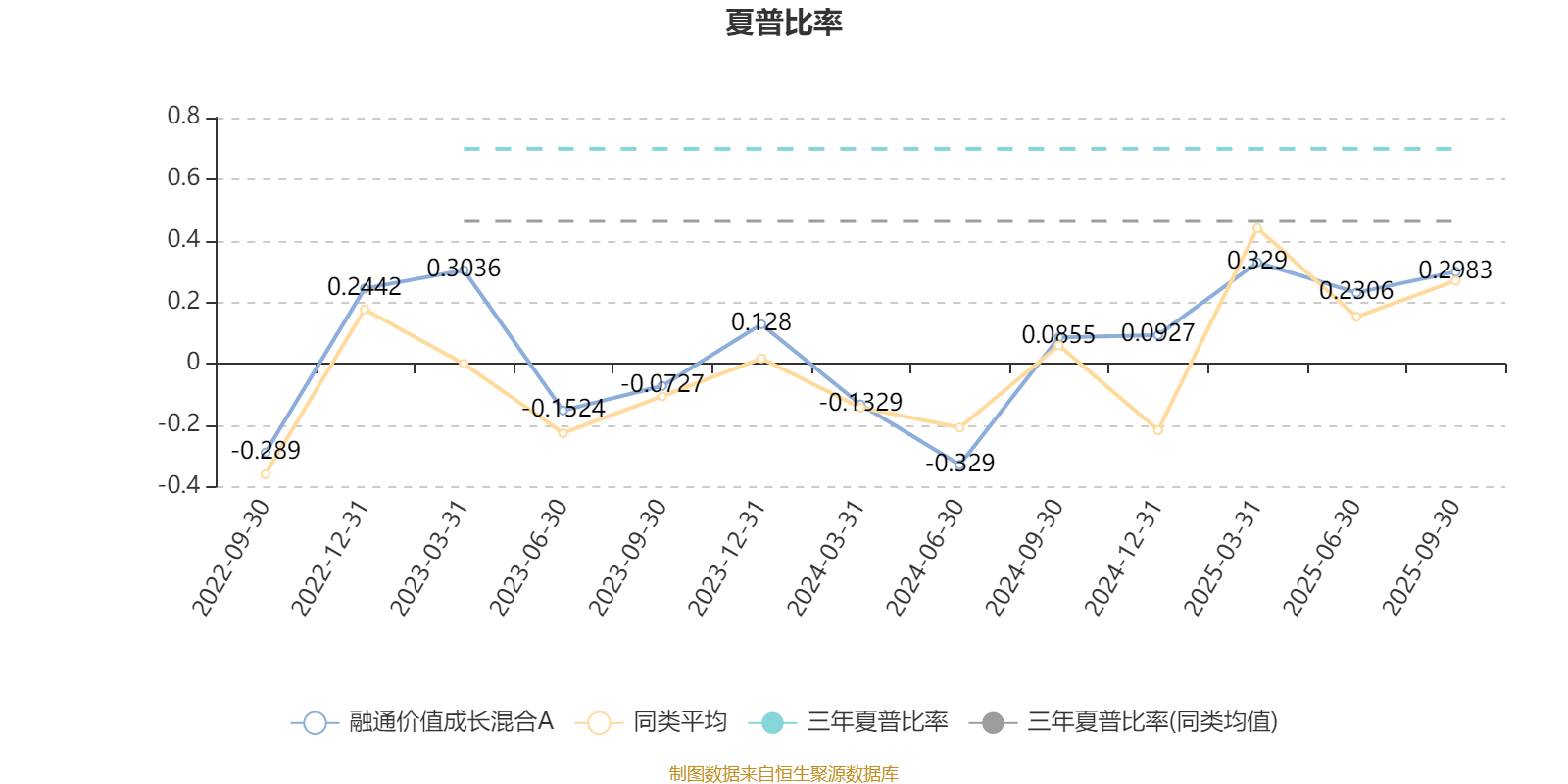 截至9月30日,基金近三年夏普比率为0.6983,位于同类可比基金15/75。