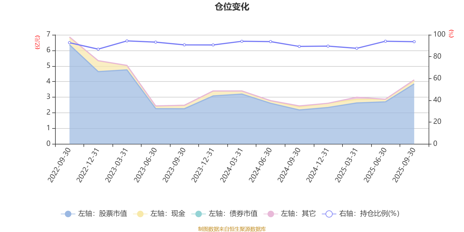 据定期报告数据统计,近三年平均股票仓位为91.53%,同类平均为86.73%。2023年一季度末基金达到94.39%的最高仓位,2022年末最低,为86.87%。