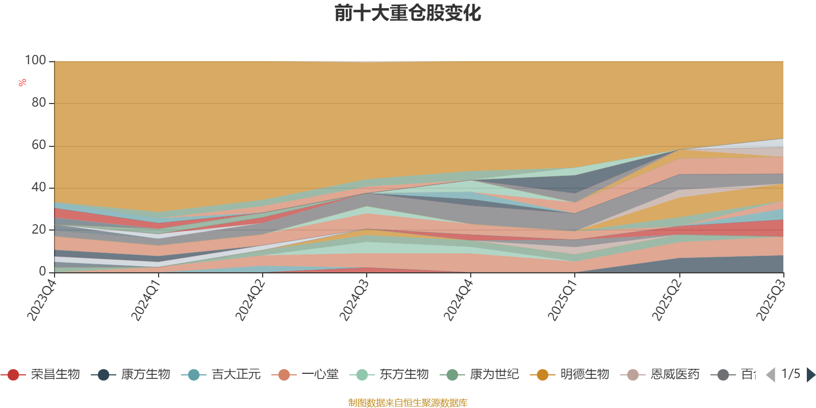 截至2025年三季度末,基金十大重仓股分别是一心堂、爱博医疗、固生堂、开立医疗、康方生物、方盛制药、三友医疗、再鼎医药、天立国际控股、健之佳。