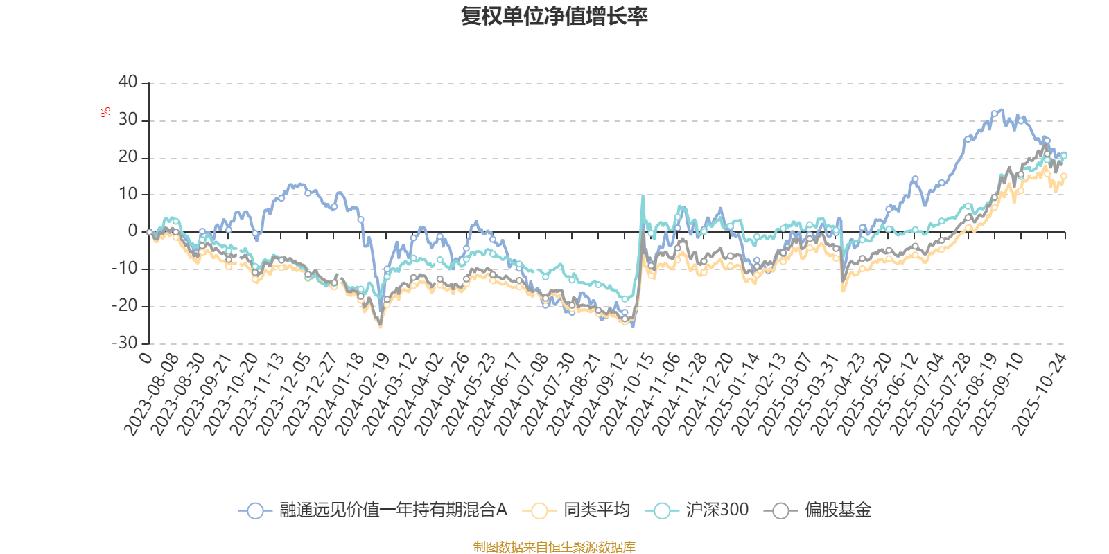 截至10月24日,融通远见价值一年持有期混合A近三个月复权单位净值增长率为-3.29%,位于同类可比基金682/689;近半年复权单位净值增长率为18.24%,位于同类可比基金496/688;近一年复权单位净值增长率为26.07%,位于同类可比基金337/653。