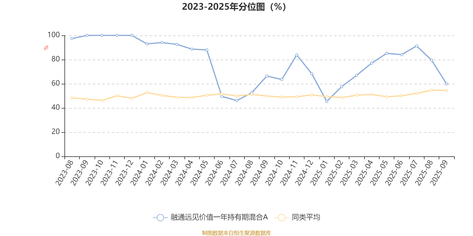 通过所选区间该基金净值增长率分位图,可以观察该基金与同类基金业绩比较情况。图为坐标原点到区间内某时点的净值增长率在同类基金中的分位数。