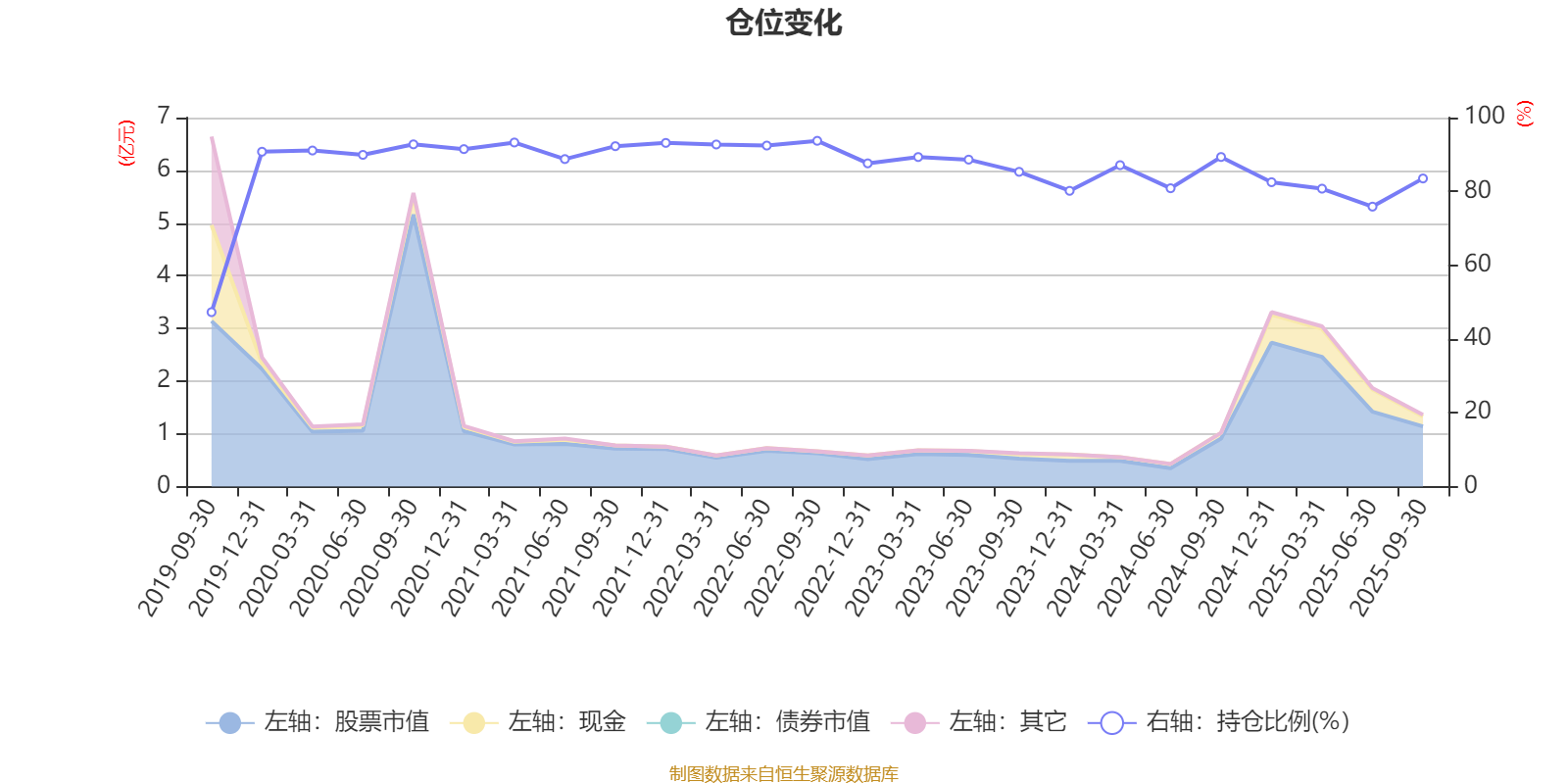 据定期报告数据统计,近三年平均股票仓位为84.24%,同类平均为87.16%。2022年三季度末基金达到93.71%的最高仓位,2019年三季度末最低,为47.27%。