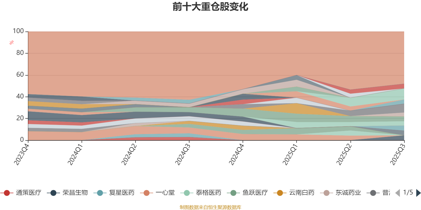 截至2025年三季度末,基金十大重仓股分别是恒瑞医药、药明康德、迈瑞医疗、三友医疗、荣昌生物、昭衍新药、南微医学、恩华药业、爱博医疗、春立医疗。