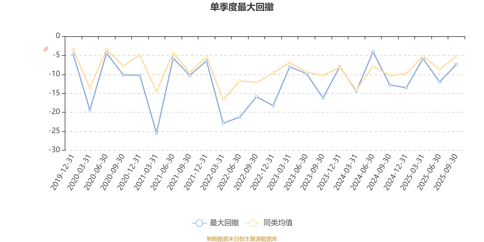 通过所选区间该基金净值增长率分位图,可以观察该基金与同类基金业绩比较情况。图为坐标原点到区间内某时点的净值增长率在同类基金中的分位数。