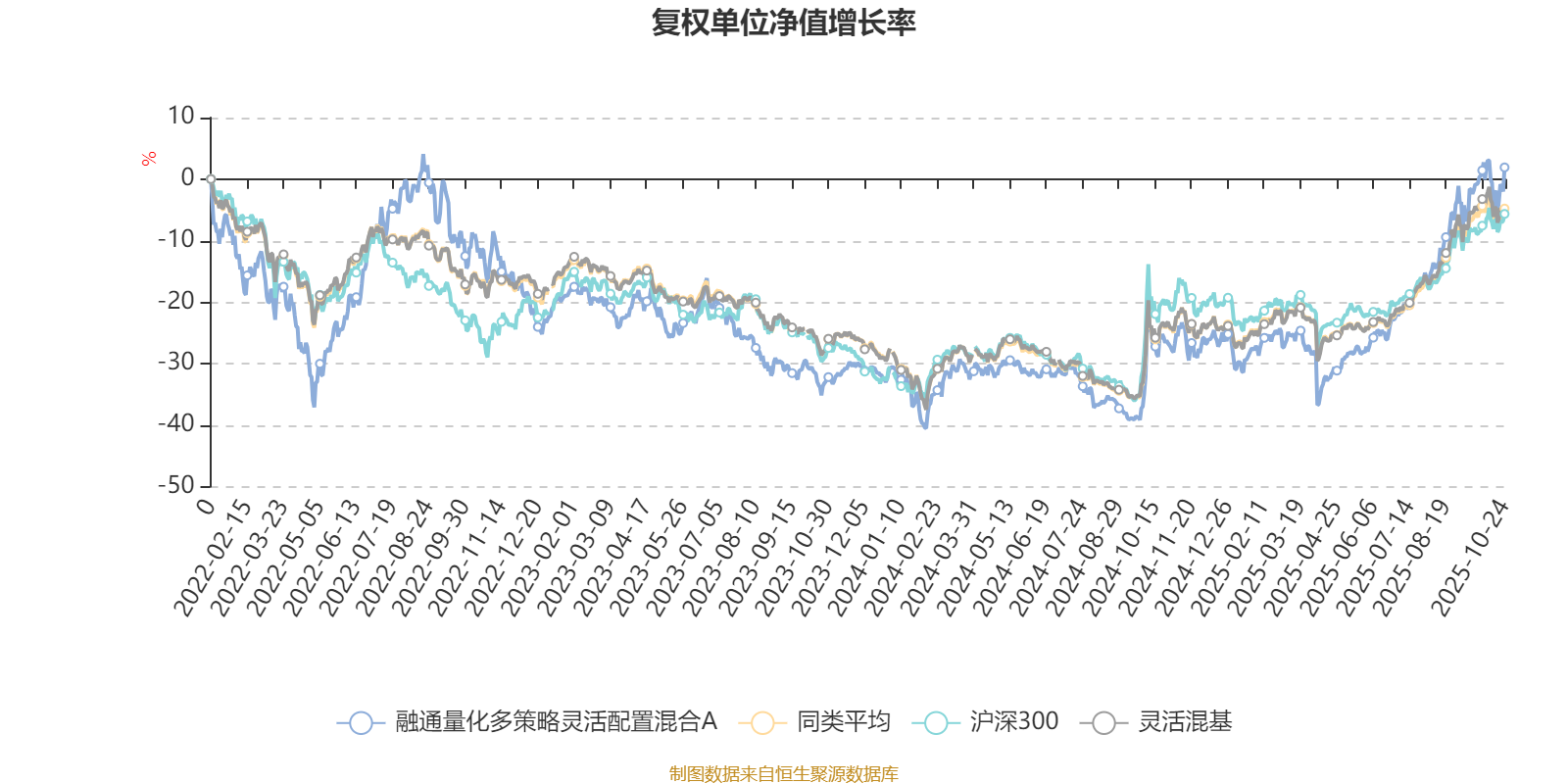 截至10月24日,融通量化多策略灵活配置混合A近三个月复权单位净值增长率为22.80%,位于同类可比基金290/1287;近半年复权单位净值增长率为47.85%,位于同类可比基金158/1287;近一年复权单位净值增长率为38.87%,位于同类可比基金267/1287;近三年复权单位净值增长率为17.00%,位于同类可比基金560/1286。