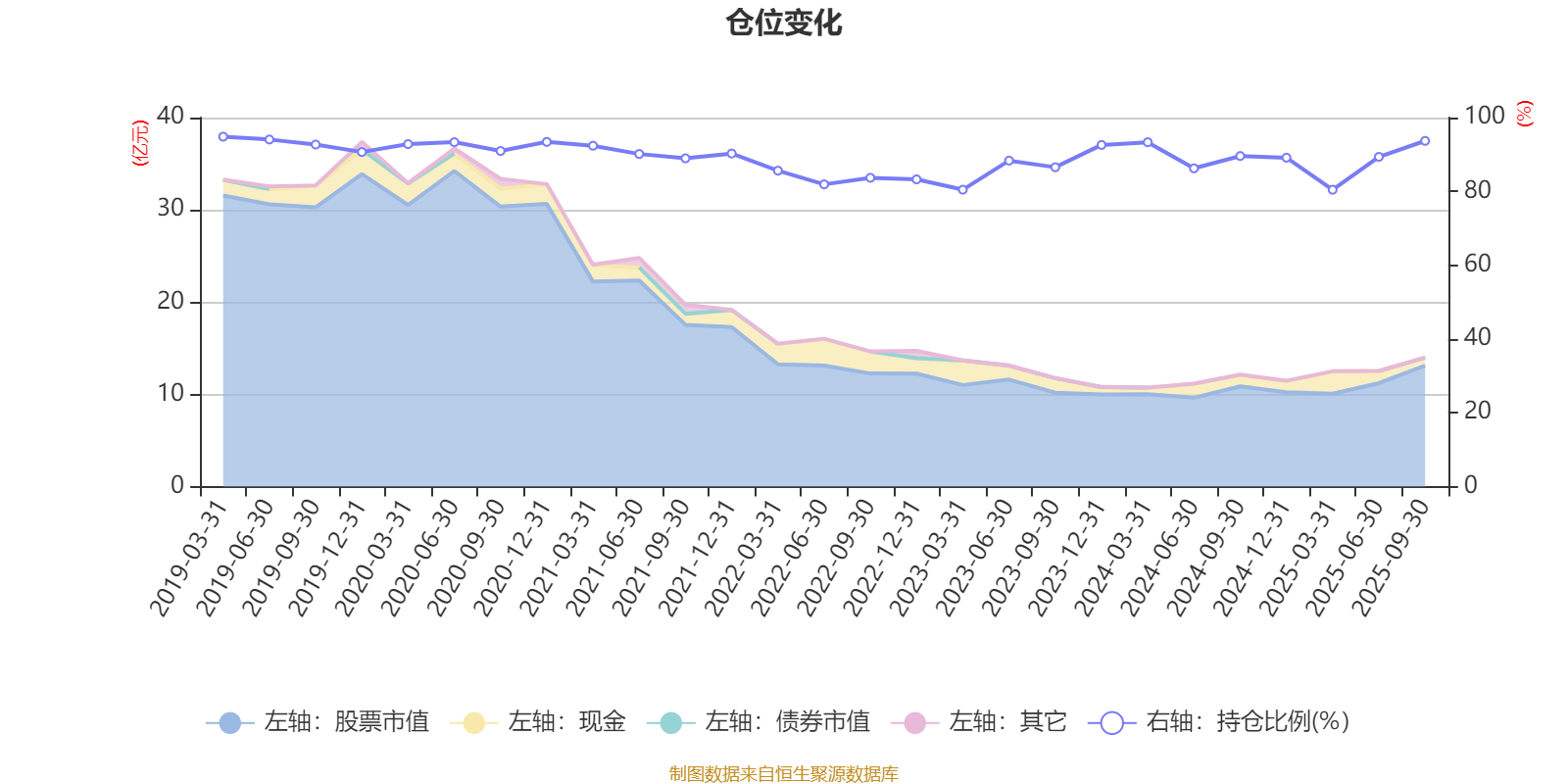 据定期报告数据统计,近三年平均股票仓位为87.75%,同类平均为87.54%。2019年一季度末基金达到94.83%的最高仓位,2025年一季度末最低,为80.45%。