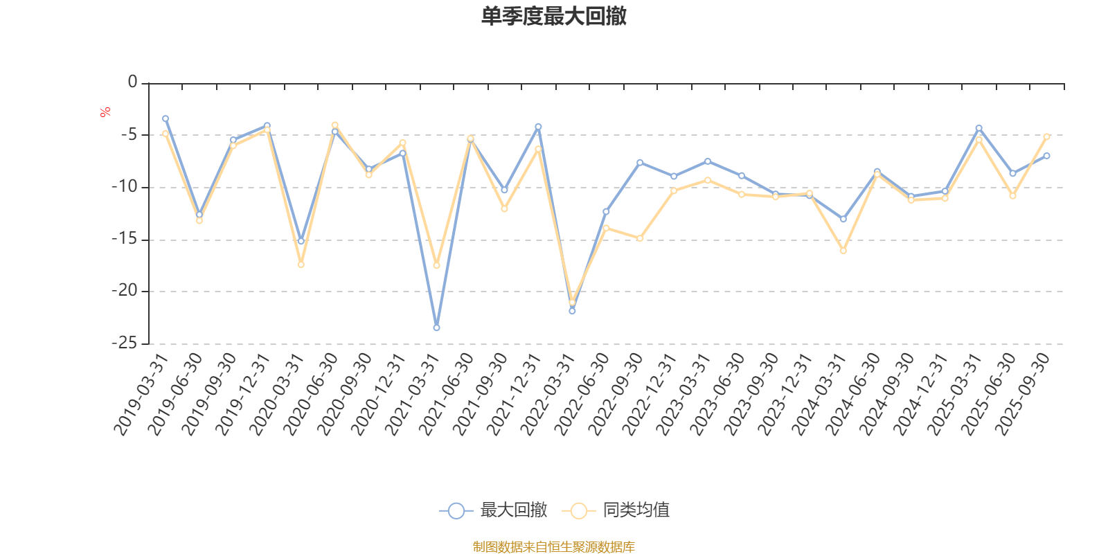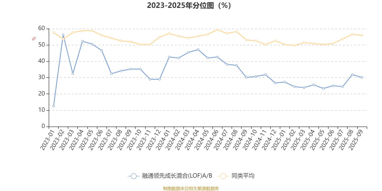 通过所选区间该基金净值增长率分位图,可以观察该基金与同类基金业绩比较情况。图为坐标原点到区间内某时点的净值增长率在同类基金中的分位数。