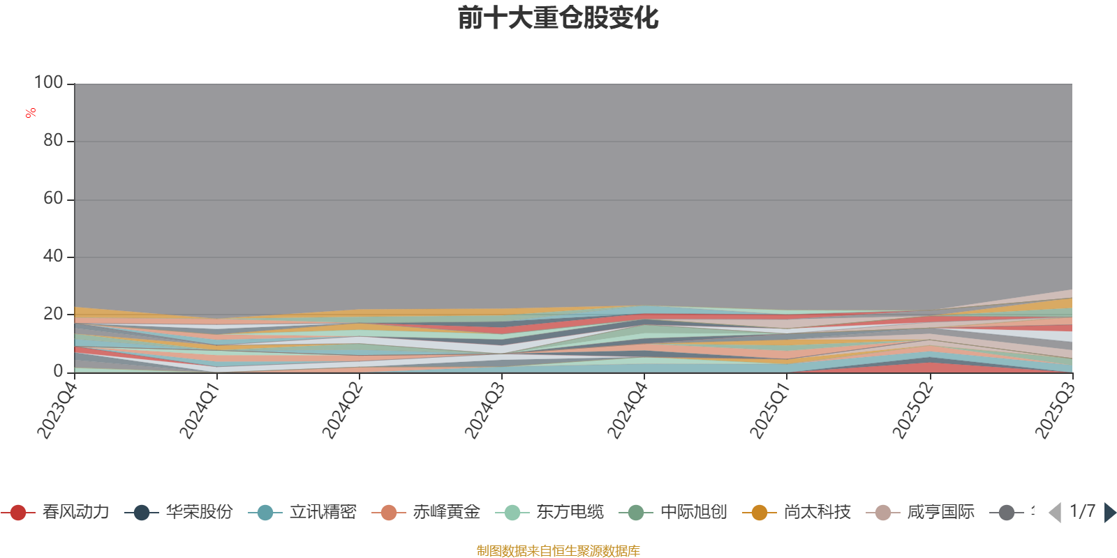 截至2025年三季度末,基金十大重仓股分别是寒武纪、工业富联、胜宏科技、兆易创新、生益科技、迪威尔、通富微电、立讯精密、新华保险、中际旭创。