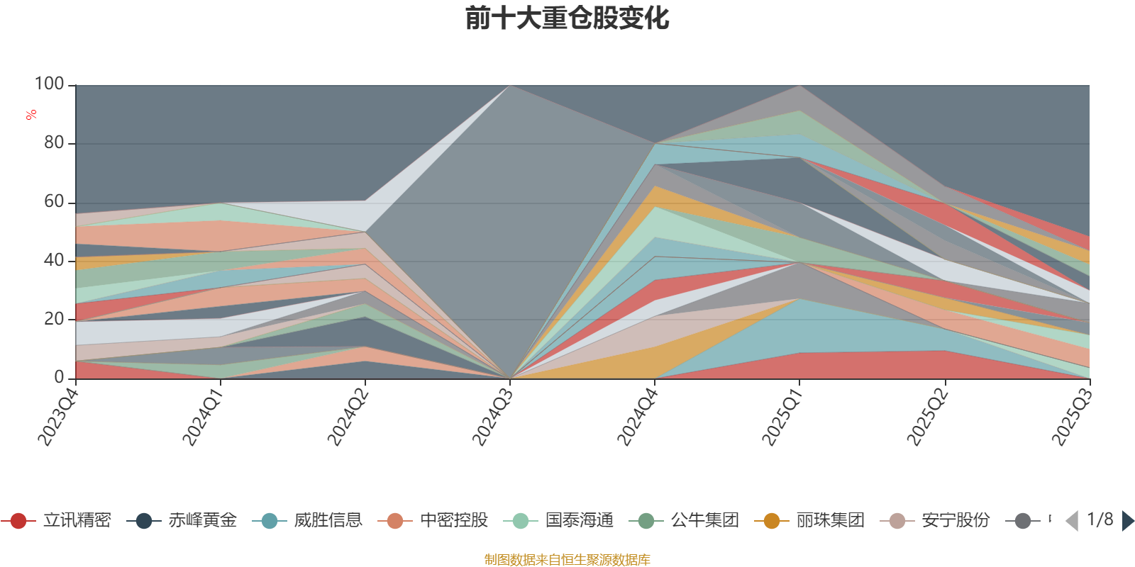 截至2025年三季度末,基金十大重仓股分别是中集车辆、华利集团、东鹏饮料、科前生物、紫金矿业、中国中免、若羽臣、东方财富、北京君正、国泰海通。