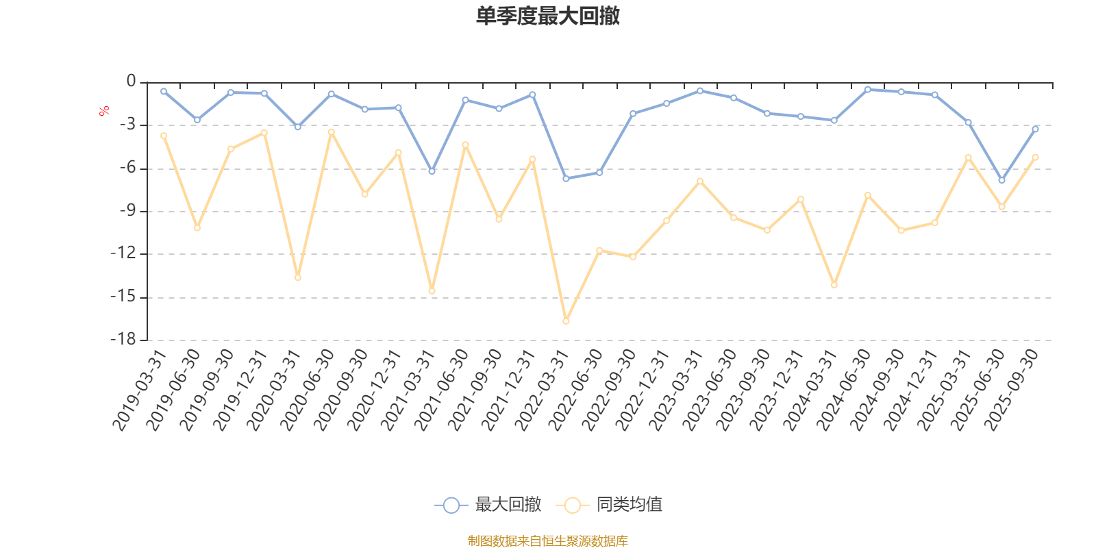 截至10月24日,基金近三年最大回撤为9.56%,同类可比基金排名145/1283。单季度最大回撤出现在2025年二季度,为6.84%。