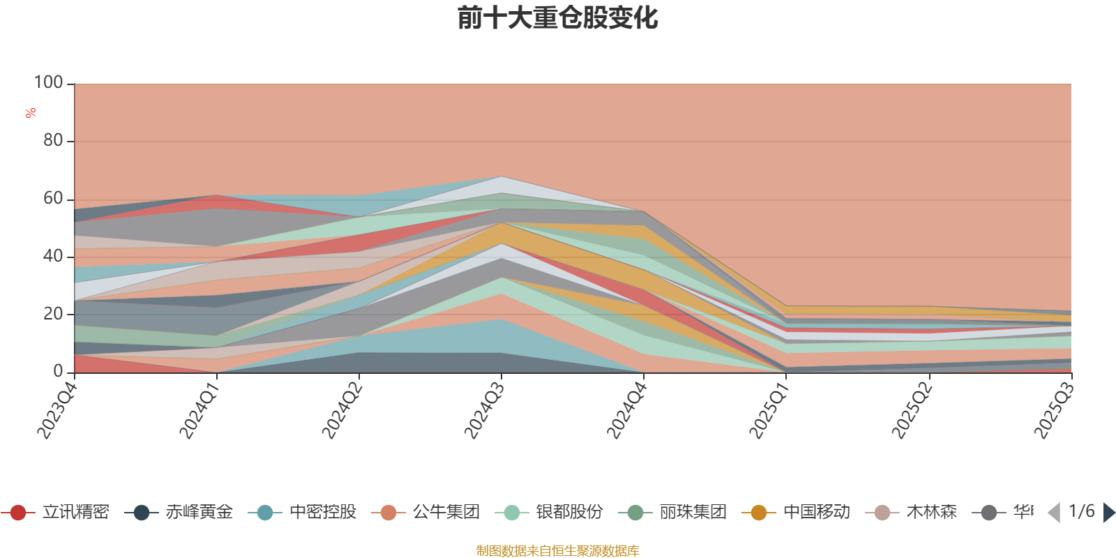 截至2025年三季度末,基金十大重仓股分别是宁德时代、贵州茅台、中国平安、招商银行、紫金矿业、美的集团、立讯精密、新易盛、东方财富、恒瑞医药。