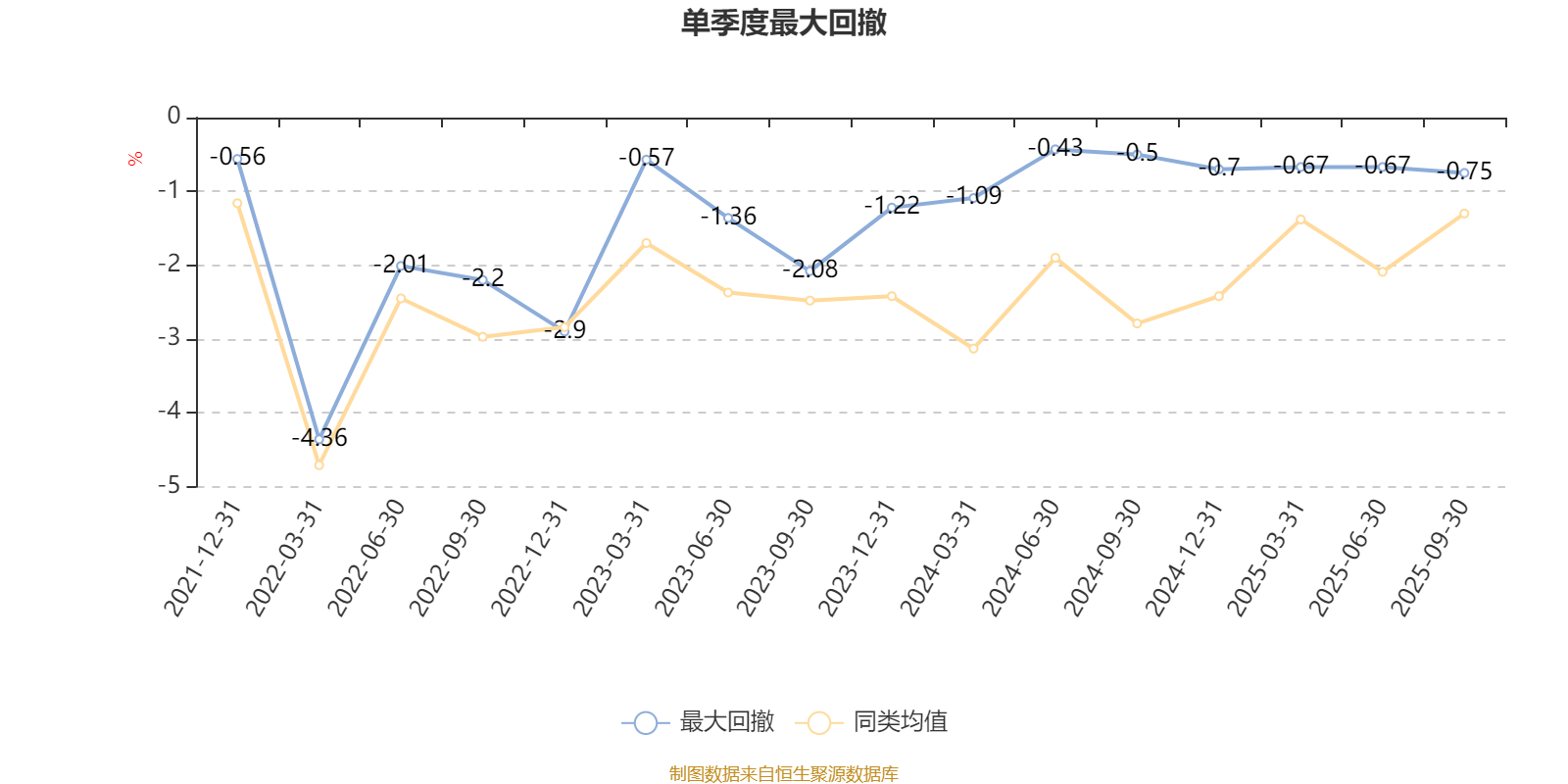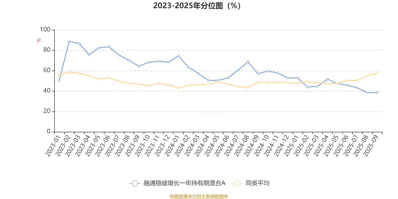 通过所选区间该基金净值增长率分位图,可以观察该基金与同类基金业绩比较情况。图为坐标原点到区间内某时点的净值增长率在同类基金中的分位数。